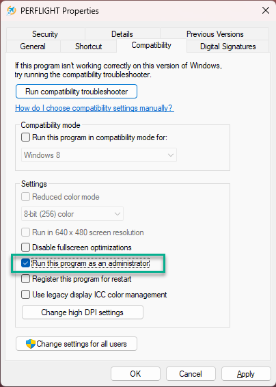 Running PERFLIGHT with Elevated Permissions (Administrator)